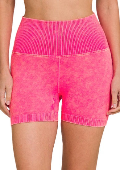 Keep it Close Compression Biker Shorts in Neon Coral Fuchsia