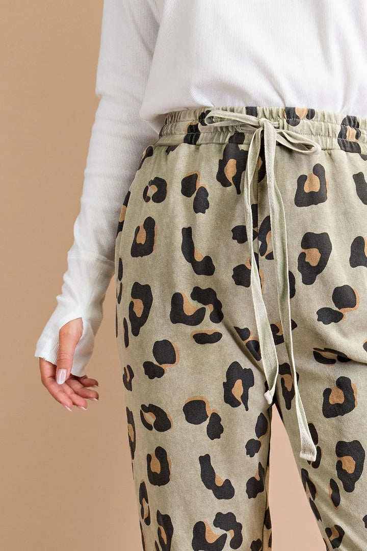 Stay wild and cozy in our Aspen Mineral Wash Joggers! Featuring a playful faded olive leopard print, these joggers are designed with an adjustable drawstring waistband for a perfect fit and convenient side pockets for all your essentials. Get ready to rock your casual and cool look!