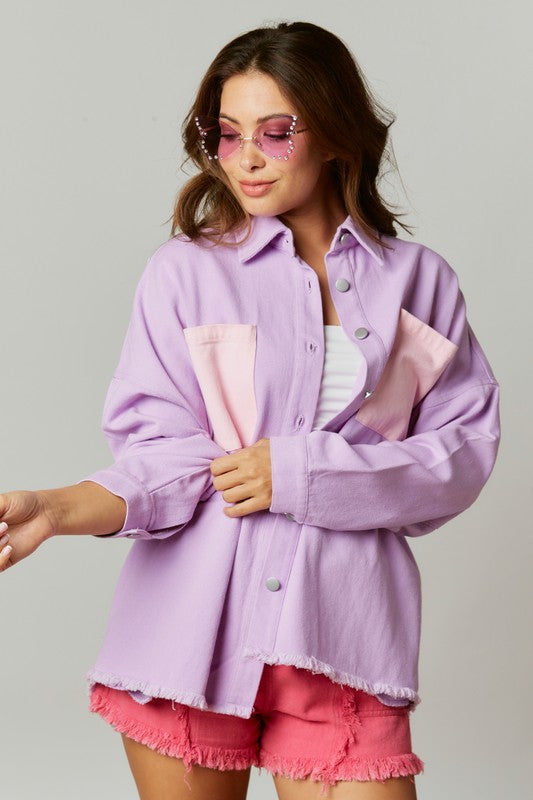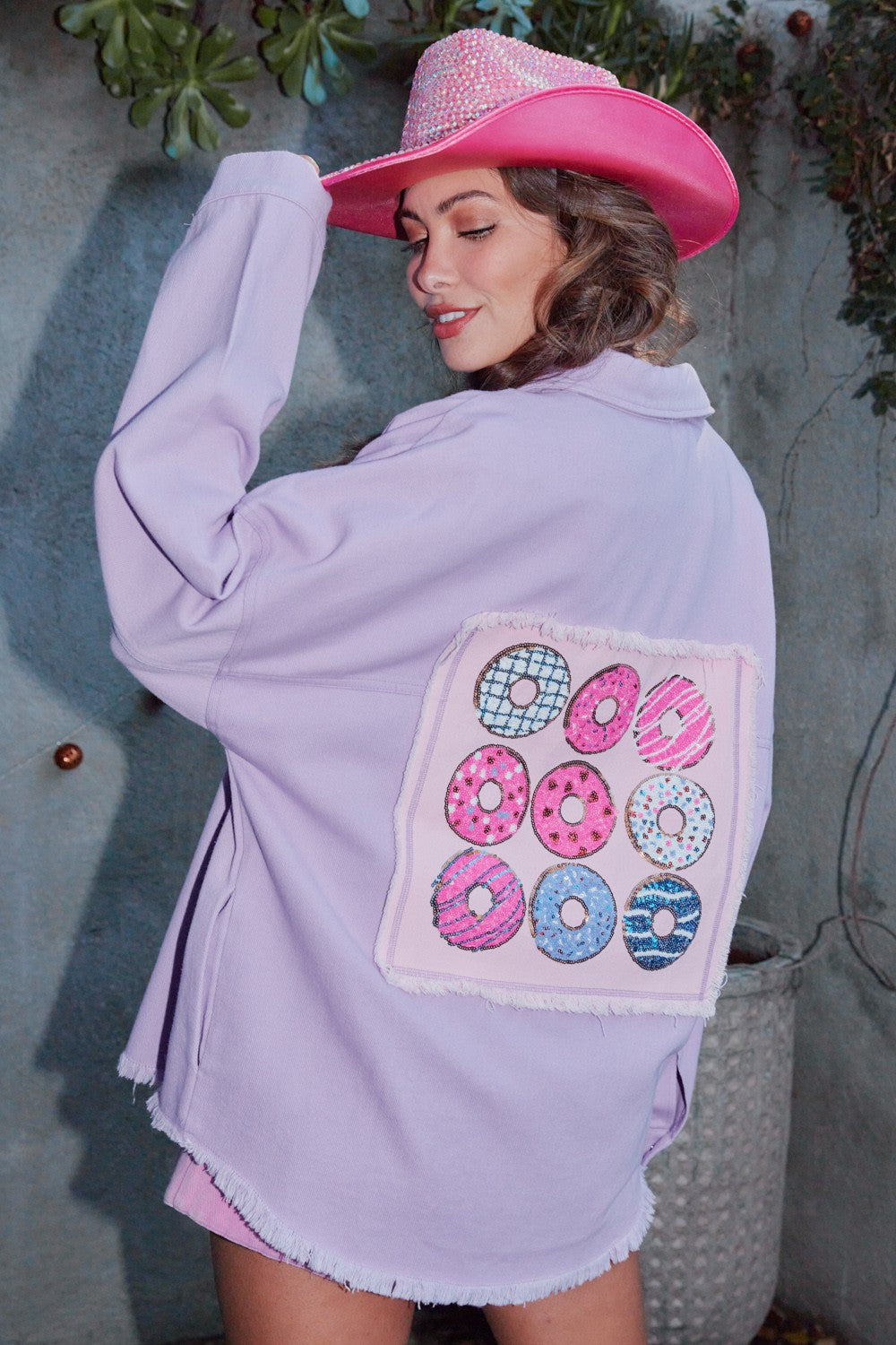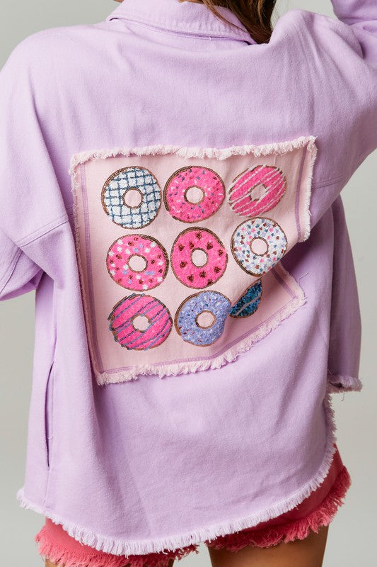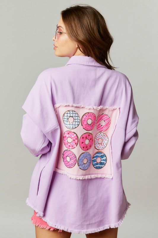 Sweet like sugar, this donut twill shacket got you sprung! Pair it with some distressed skinnies and fun shades for the sweetest fit ever!Â