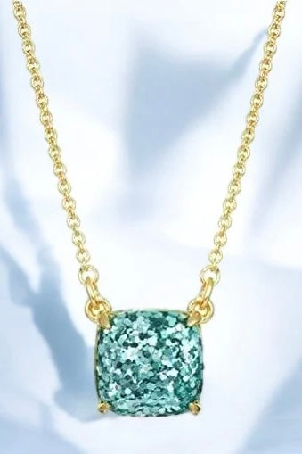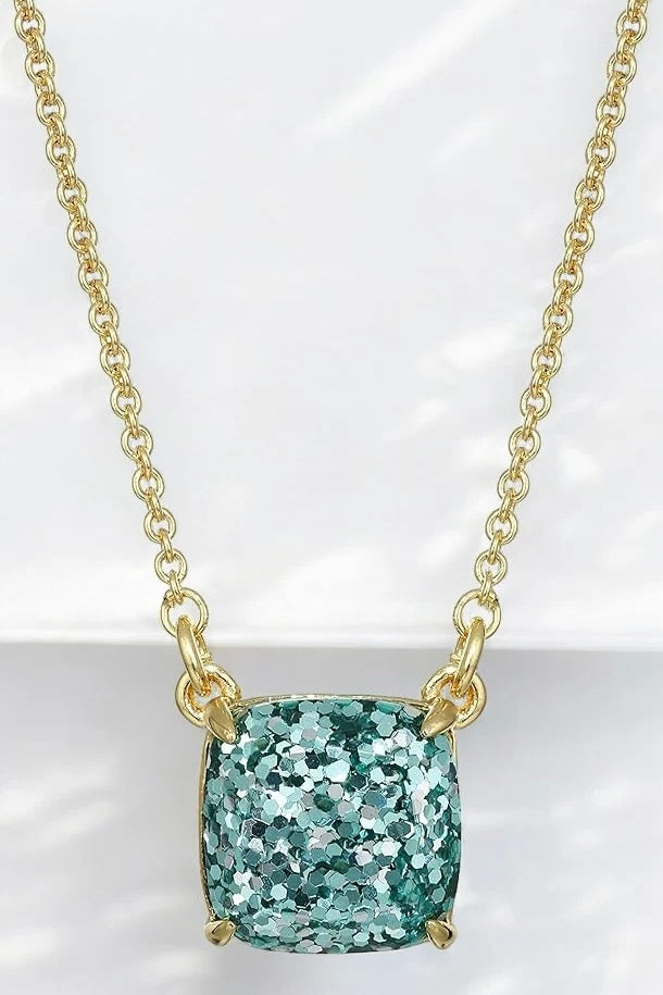 Add a touch of charm to any outfit with the Kate Spade New York Cause A Stir Mini Pendant Necklace in Turquoise. This sparkly and playful necklace features a pendant in a bright turquoise color that's sure to catch some attention. Perfect for adding a pop of color to your look while making a statement. How amazing would this look on our blue/green eyed ladies?!Â