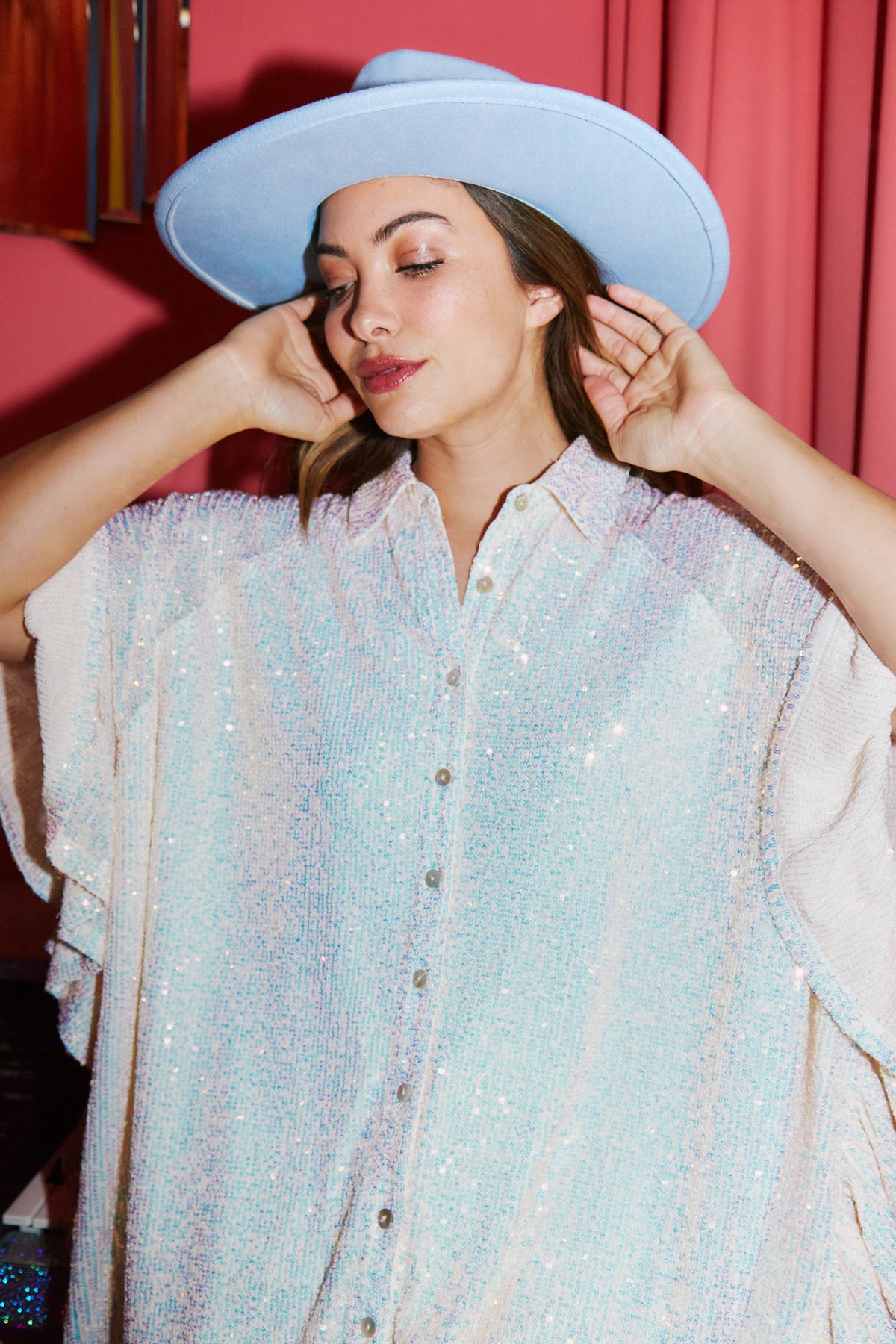 This baby is ready for your night out! Wear her as a top or a dress- you decide! This beaut is a sparkly, sequin button-down poncho, with ruffled sleeves. She can be worn with boots or heels for an easy but eye-catching look! Running oversized, so size down one! Available in 4 gorgeous colors. Search "Sweet Dream" to check out all colors!