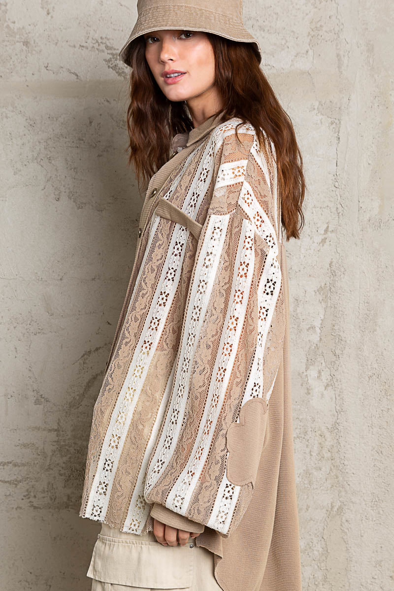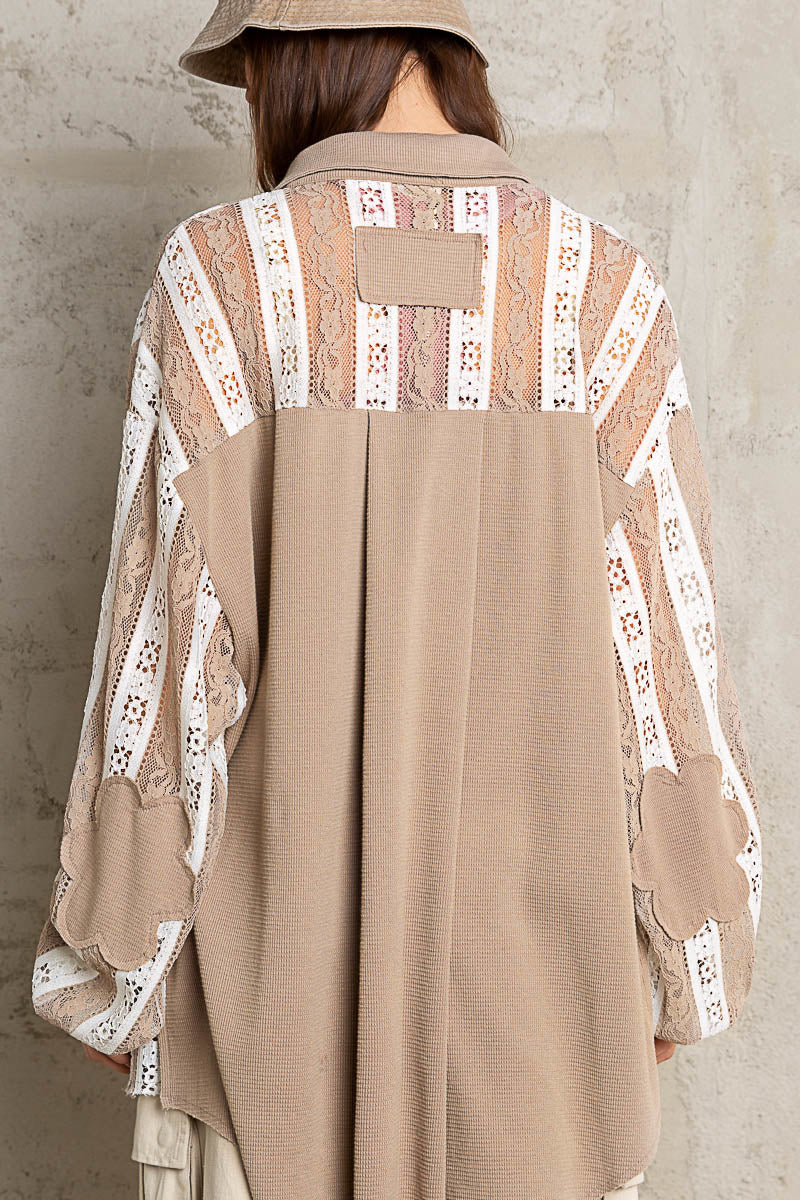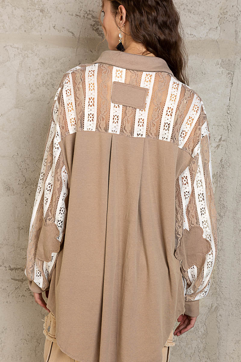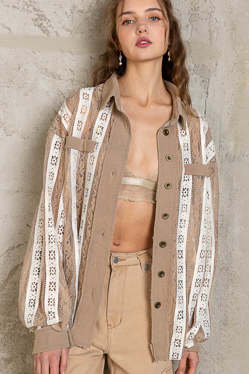 Get ready to fall in love with our Can't Get Enough Lace Button Down Top in Mocha! This playful top features a delicate lace design, collared neckline, and trendy balloon sleeves. The striped pattern in neutral tones adds a touch of charm to this gotta-have piece. (Seriously, you won't be able to resist wearing it ALL THE TIME!) 10/10! <3Â